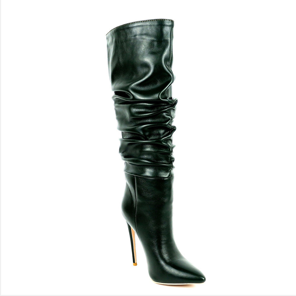 Bottes à Talon Aiguille, Bout Pointu et Effet Plissé